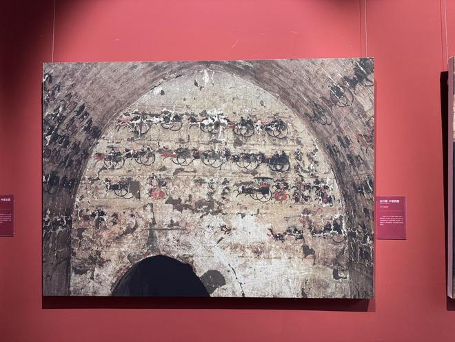 展览中,多件各时期的代表性壁画精品集中亮相。其中,各时期巅峰之作集中亮相:东汉安平逯家庄汉墓“车马出行图”气势恢宏,院落建筑图是我国现存最早大型界画,“熹平五年”纪年题记赋予其重要学术价值;磁县湾漳北齐皇陵320平方米仪仗图,以与真人等高的细腻刻画,代表北朝宫廷绘画最高水准;而曲阳五代王处直墓壁画的皴法与构图,可与传世名家画作印证,是早期山水画重要实物。